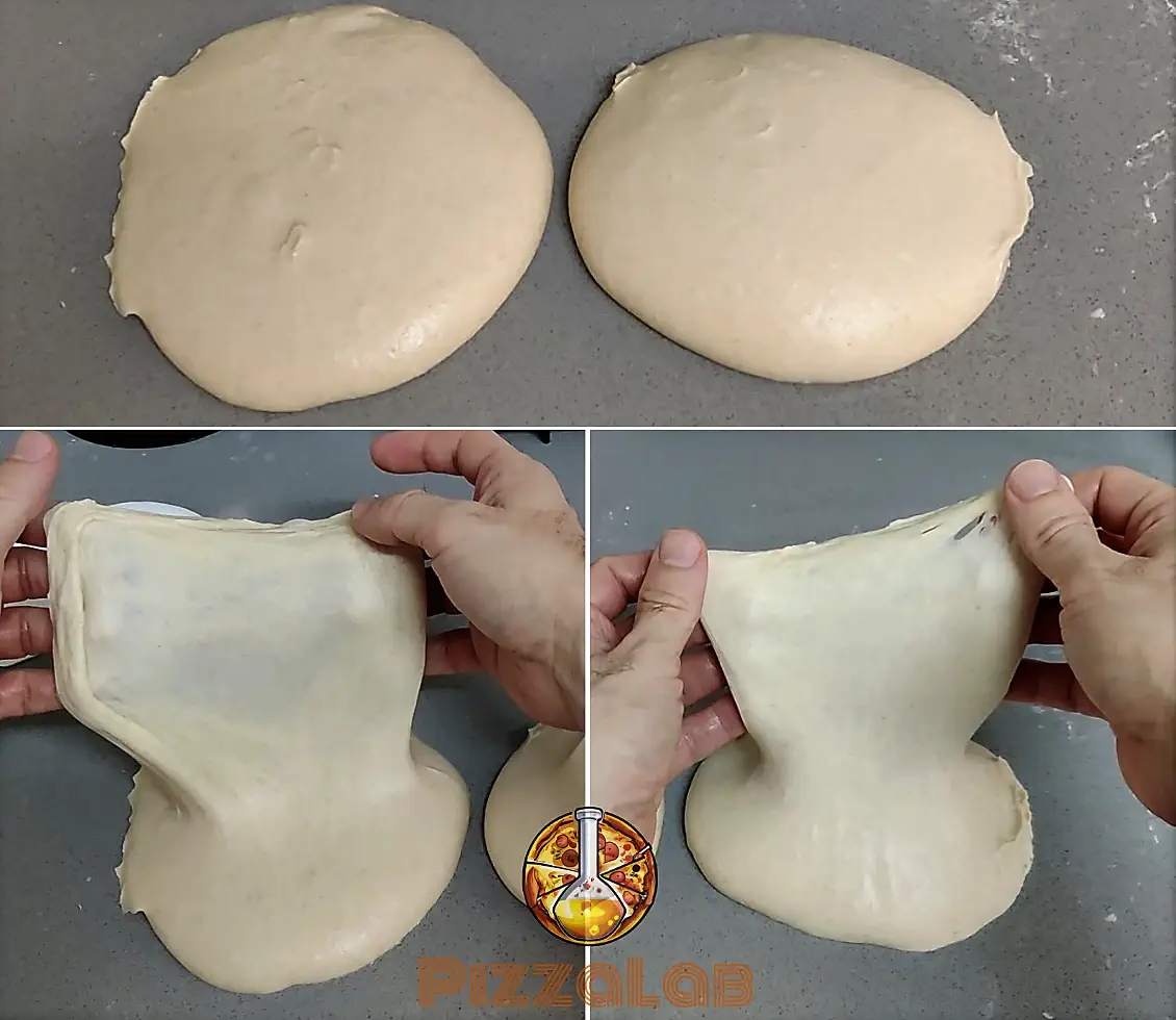 מה זה אומר בפועל? שבהכנה של בצק פיצה בהתפחה ארוכה (כאמור, מעל כ-6 שעות בטמפרטורת חדר או כ-18 שעות במקרר), לא נדרש להגיע לפיתוח גלוטן מלא ("חלון גלוטן") בסיום הלישה; מספיק להגיע למרקם יחסית חלק וקרמי (ראו תמונה מטה), ומעבר לזה – לתת לזמן לעשות עבורנו את העבודה בפיתוח הגלוטן. גם חסכנו עבודה, וגם קיבלנו תוצאות יותר טובות ועקביות.