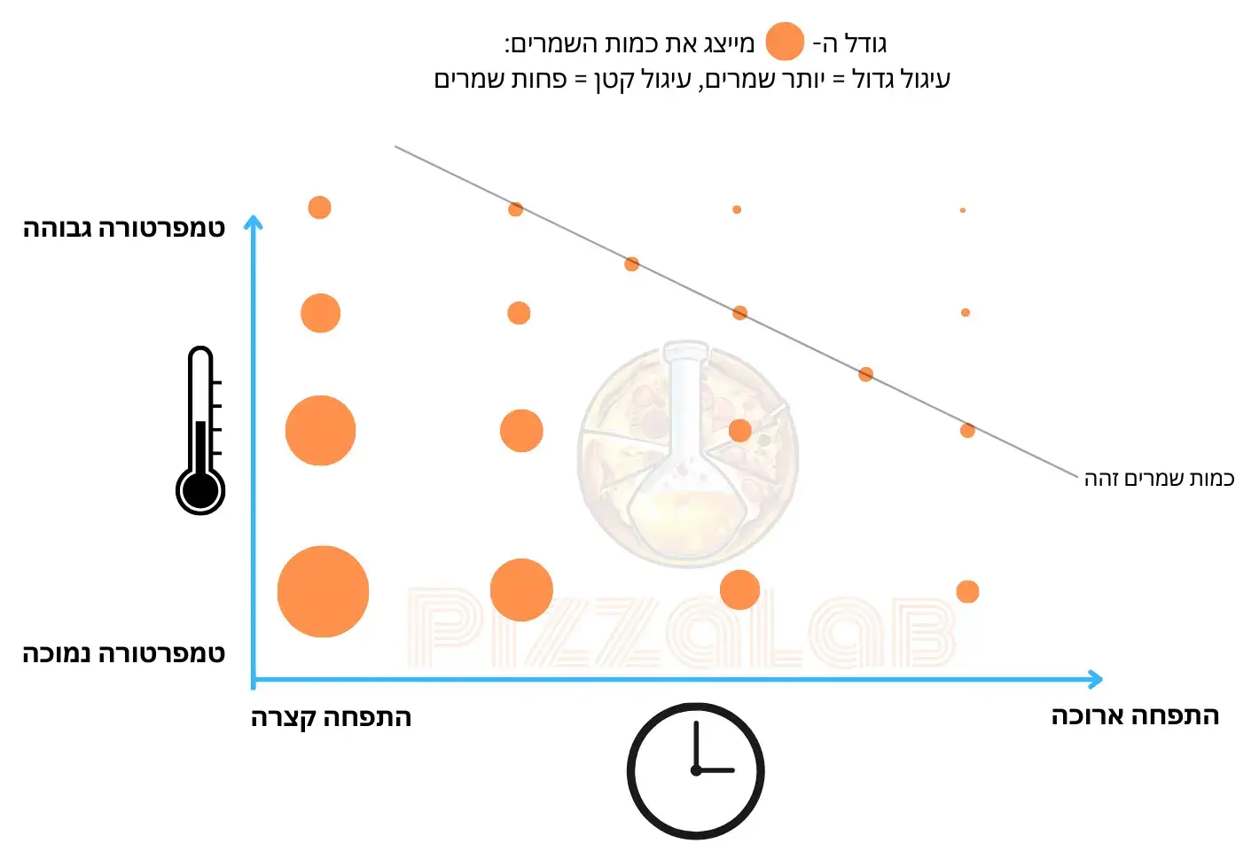 ובקיצור, עבור טמפרטורה נתונה וקבועה – ככל שזמן ההתפחה גדל נשתמש בפחות שמרים, ולהיפך.